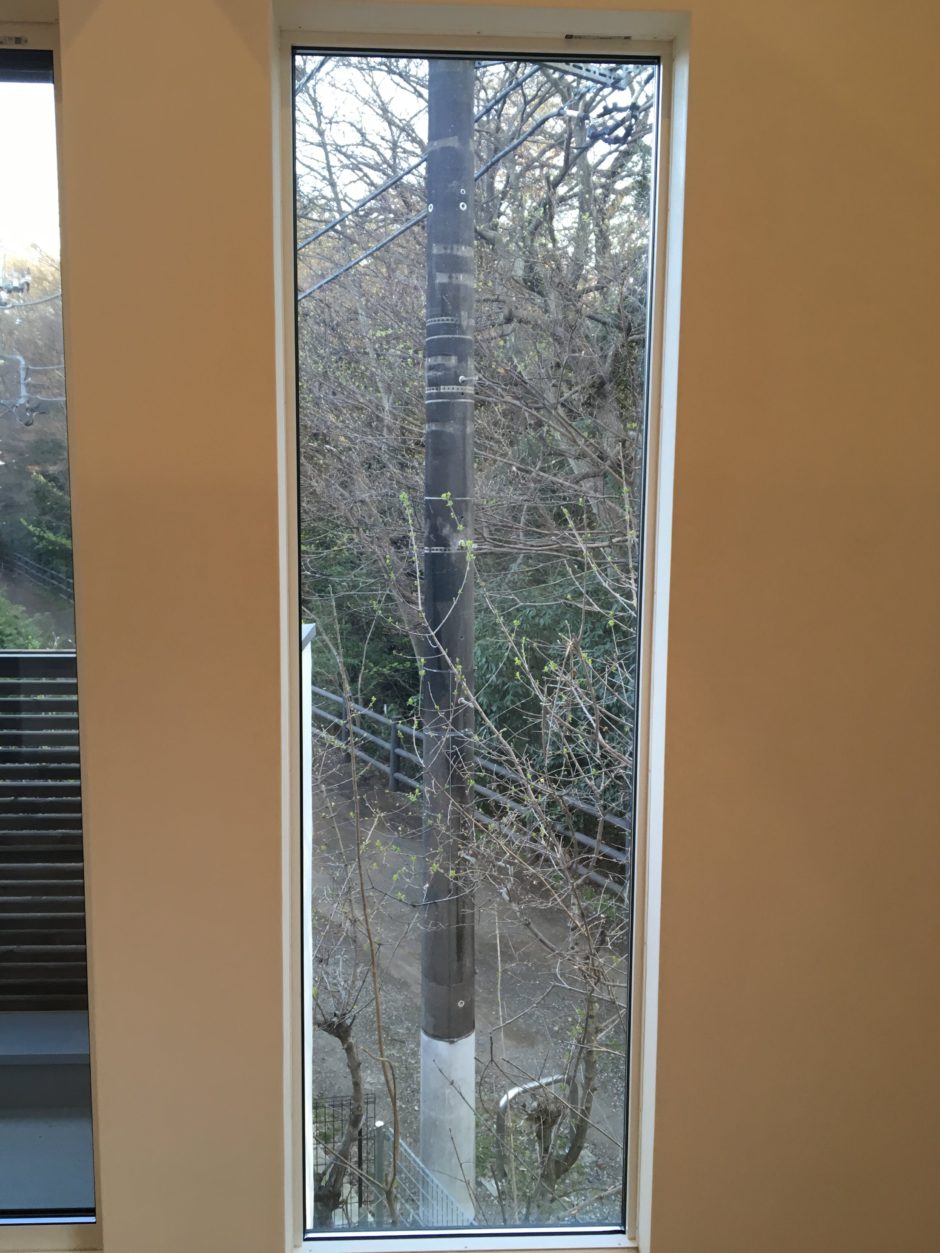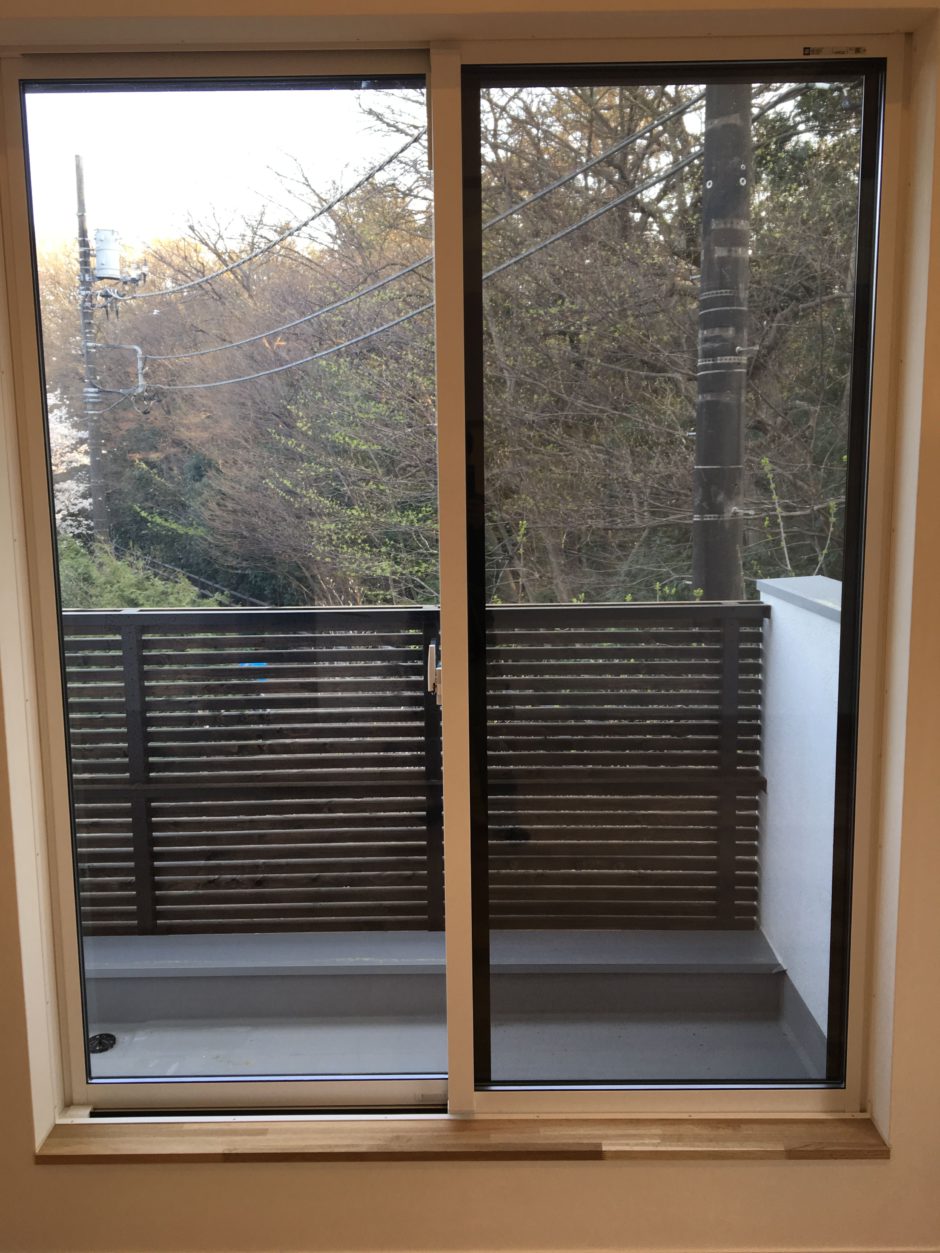 ‍施工後。2階であっても空き巣の侵入経路になります。それ以外に、防犯フィルムは強度が強いため、強い地震等による飛散からも守ってくれます。