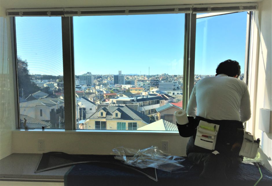 ‍住宅2階居室の大きな窓に防犯フィルムを貼付。