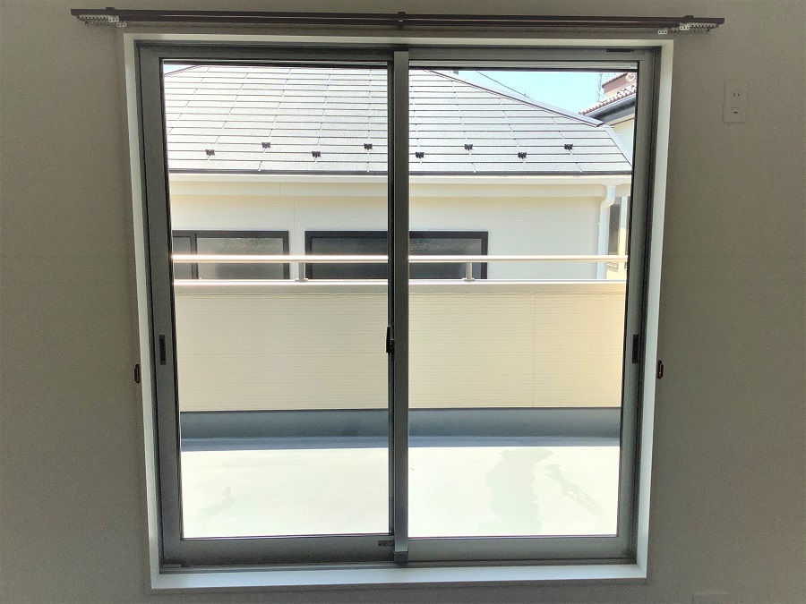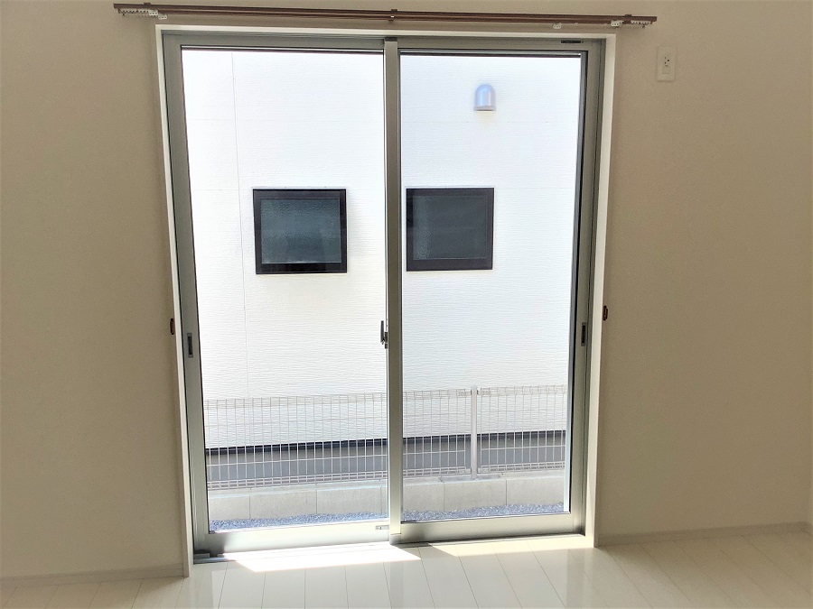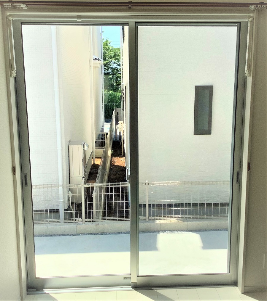 ‍新築住宅の窓に防犯フィルムを貼り付け。