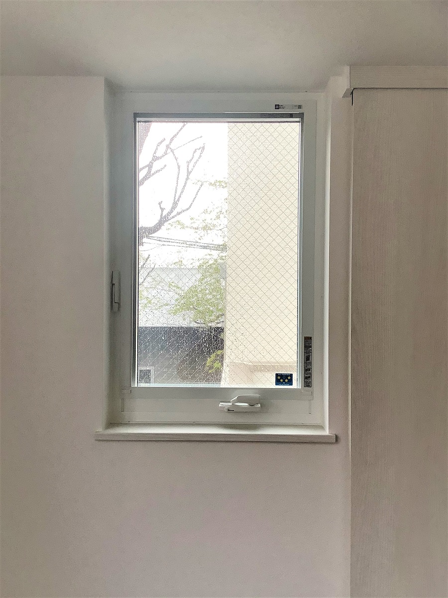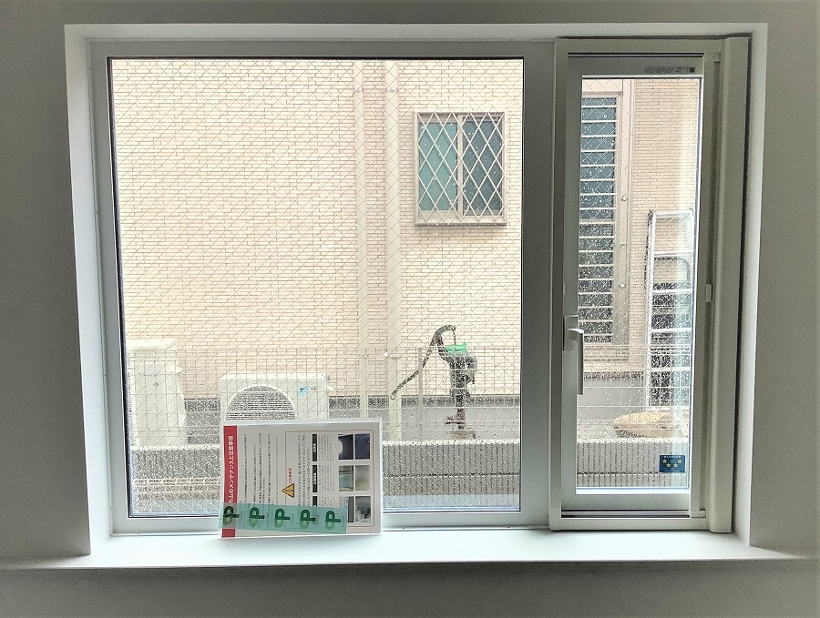 ‍新築住宅の窓に防犯フィルムを貼り付け。