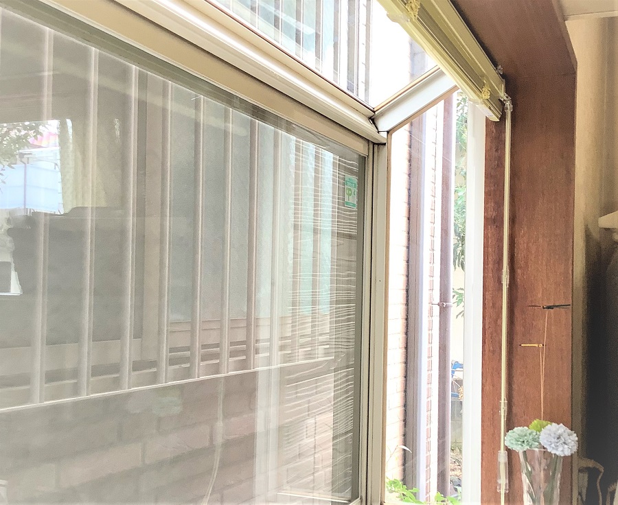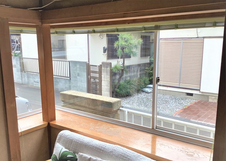 ‍ガラス窓がコーナーになったデザインのはめ込み窓にも。UVカットの効果も期待できます。