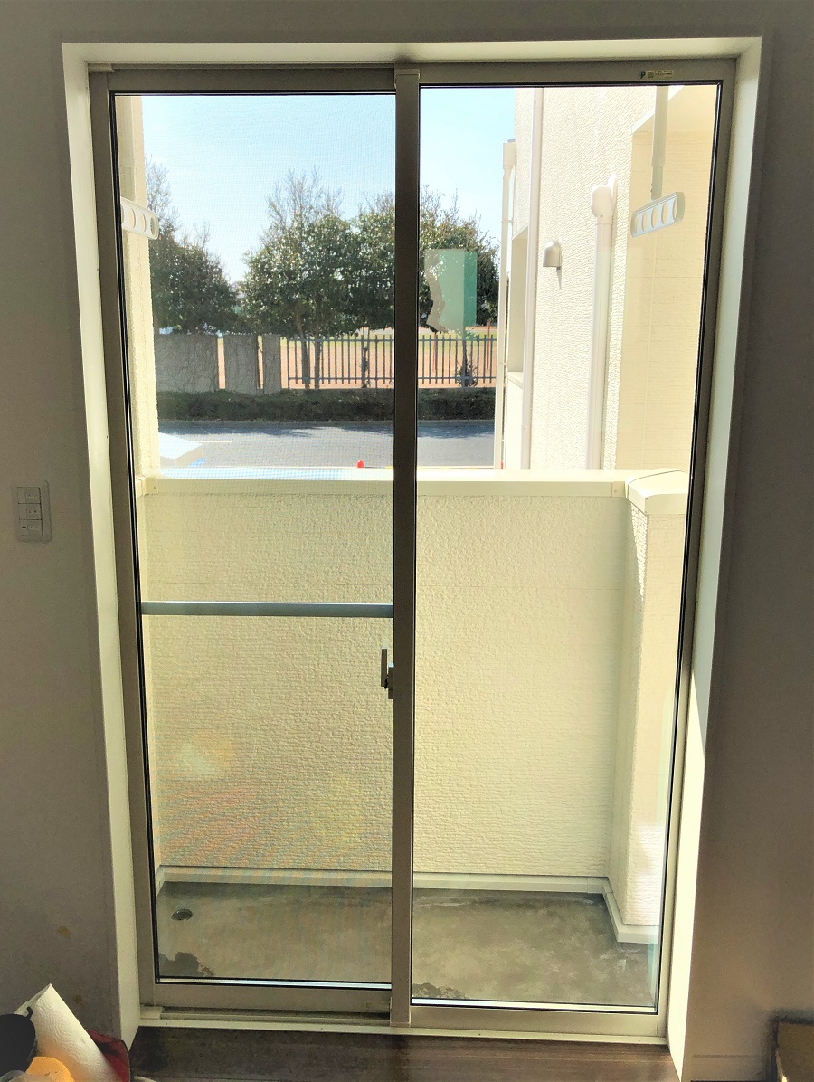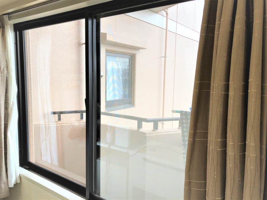 ‍住宅の居室窓に防犯フィルムを貼り付け。