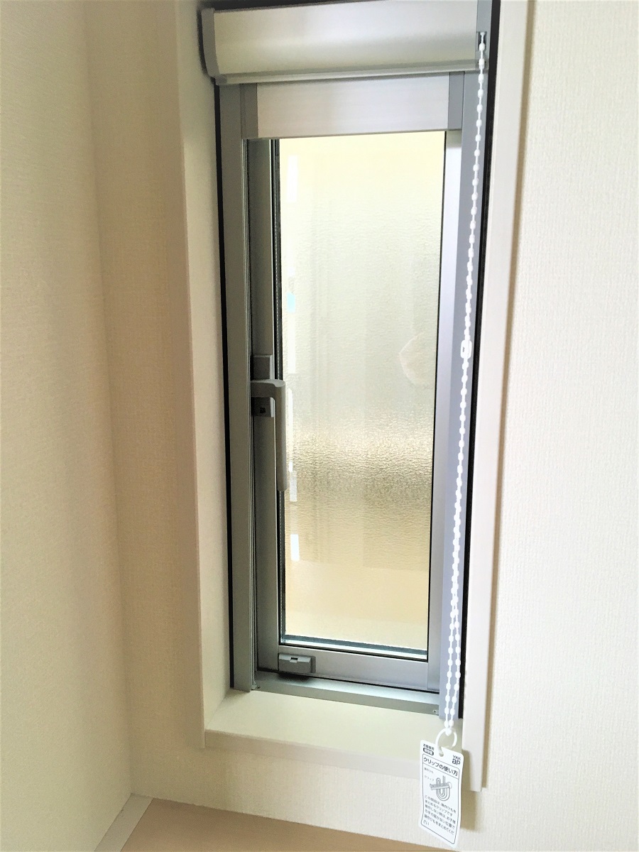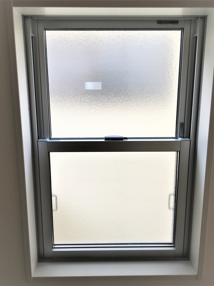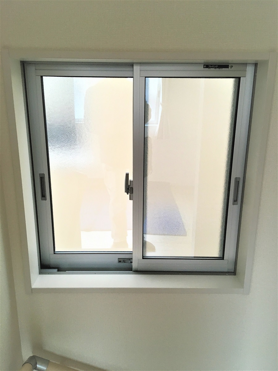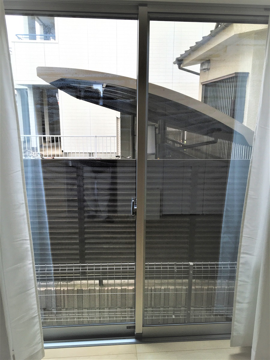 ‍新築住宅の窓に断熱フィルムを貼り付け。