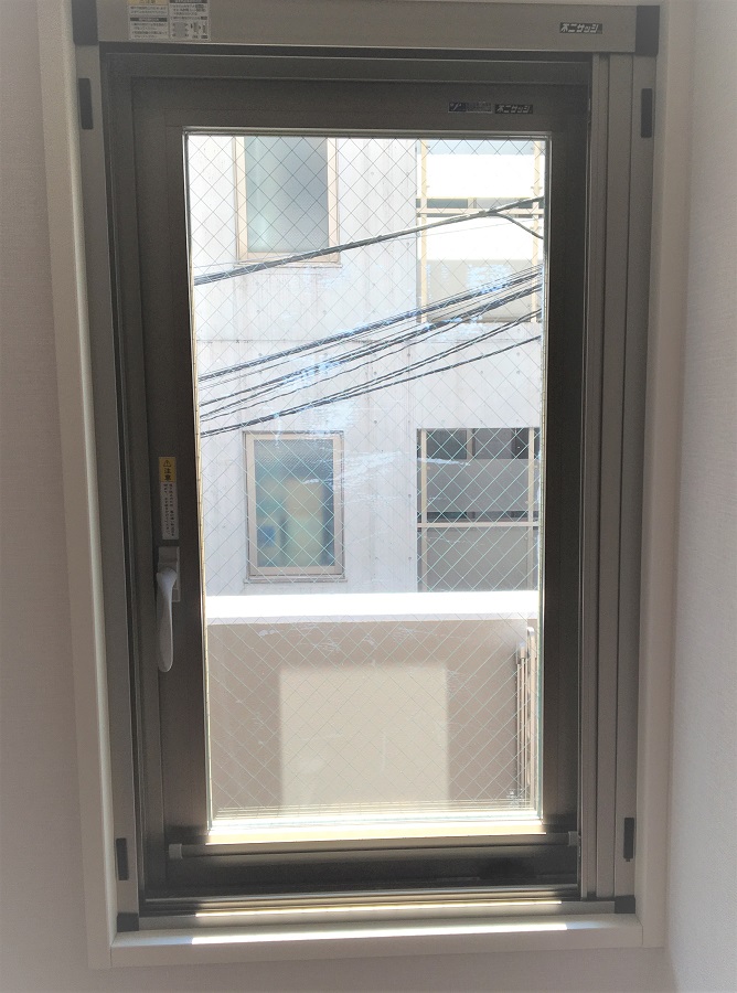 ‍入居前のマンションの窓に防犯フィルムを貼付け施工。