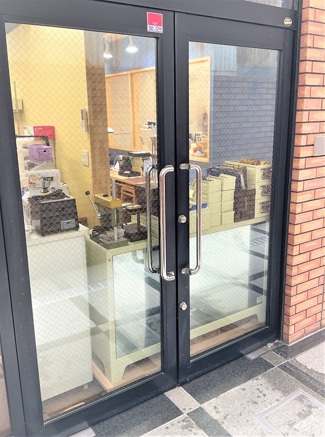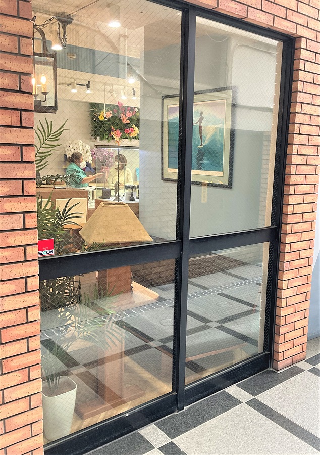 ‍店舗のガラス面に防犯フィルムを貼付け。