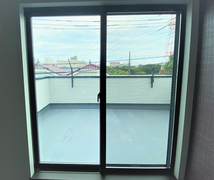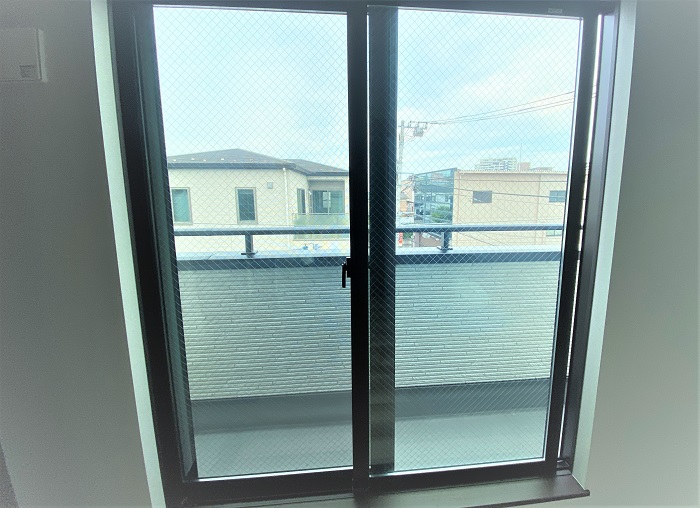 ‍新築戸建て住宅の居室窓に防犯フィルムを貼付け。