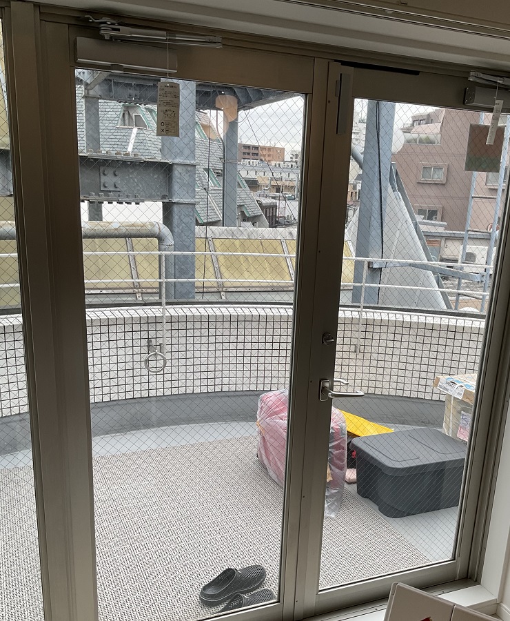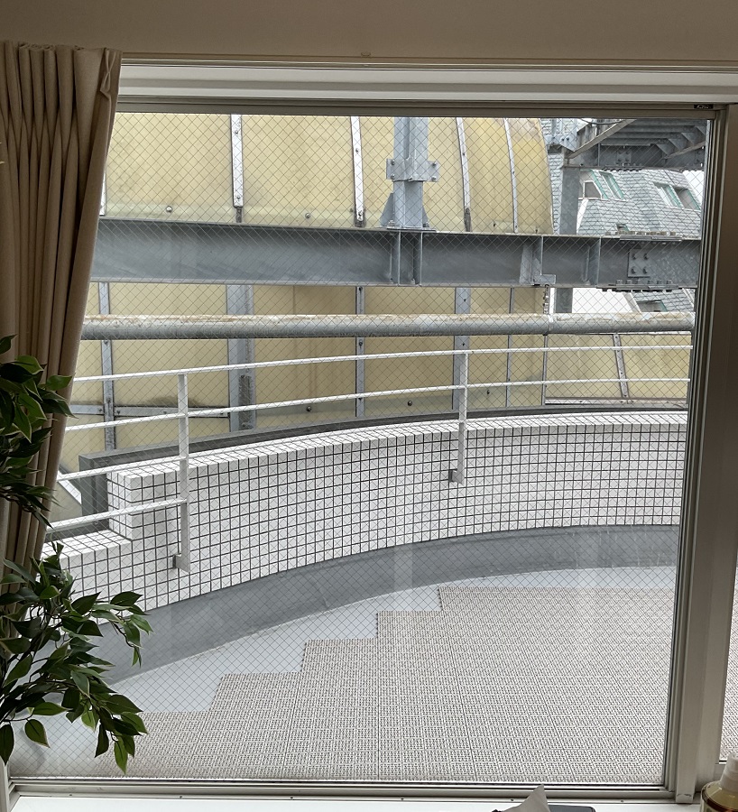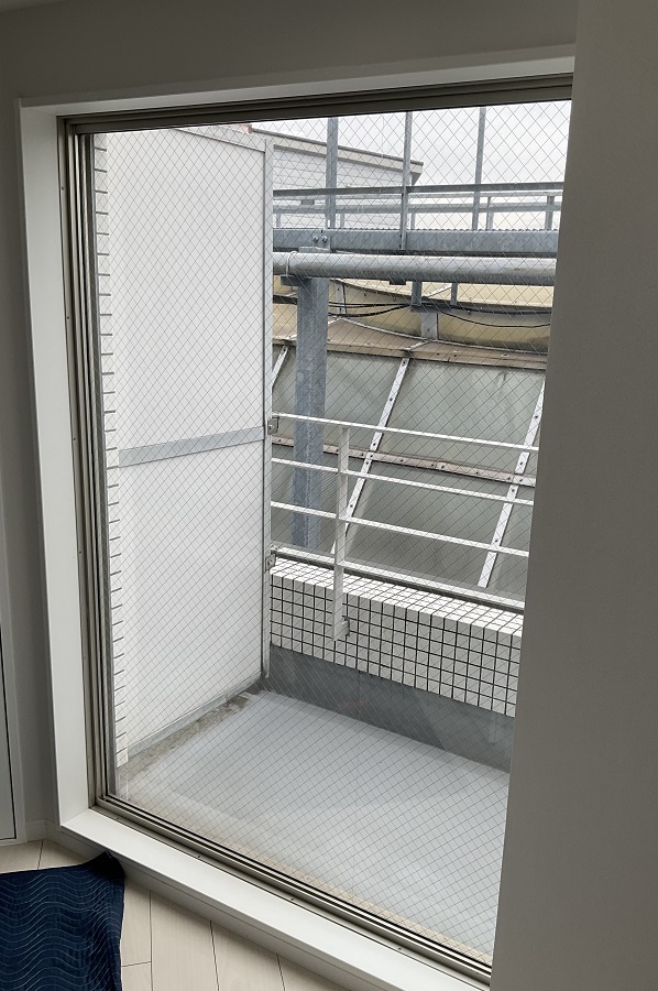 ‍マンションの居室窓に防犯フィルムを貼付け。