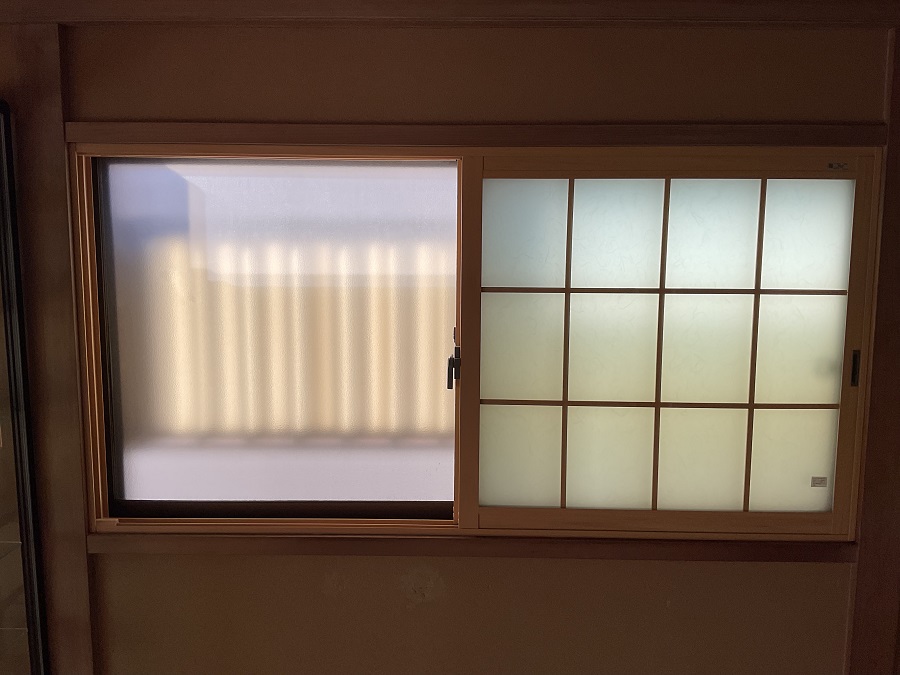 ‍戸建て住宅の居室窓に防犯フィルムを貼付け。