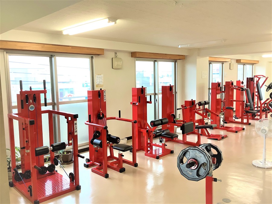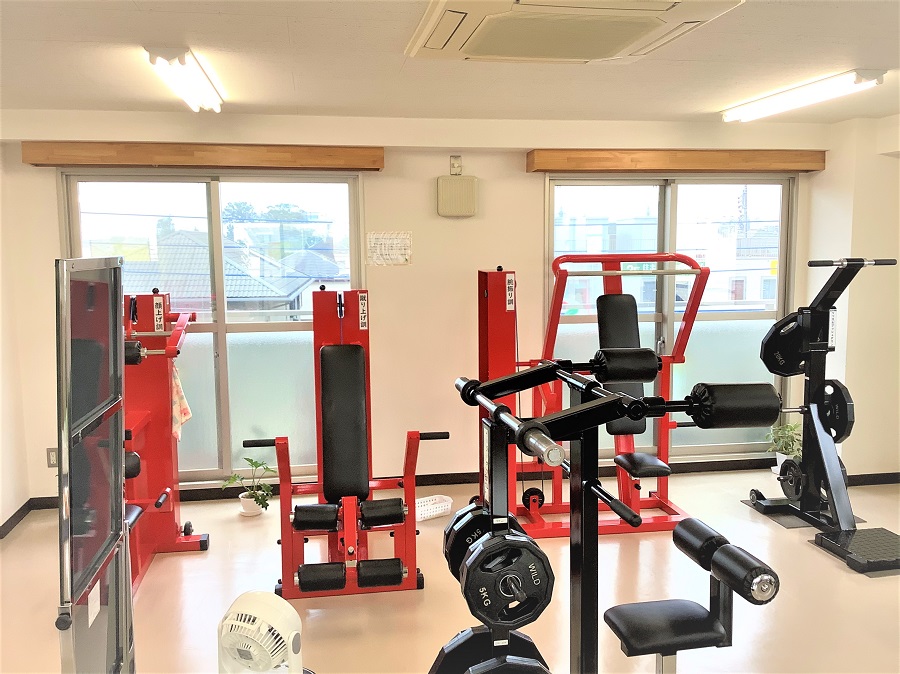 ‍ジム施設の窓に断熱フィルムを貼り付け。