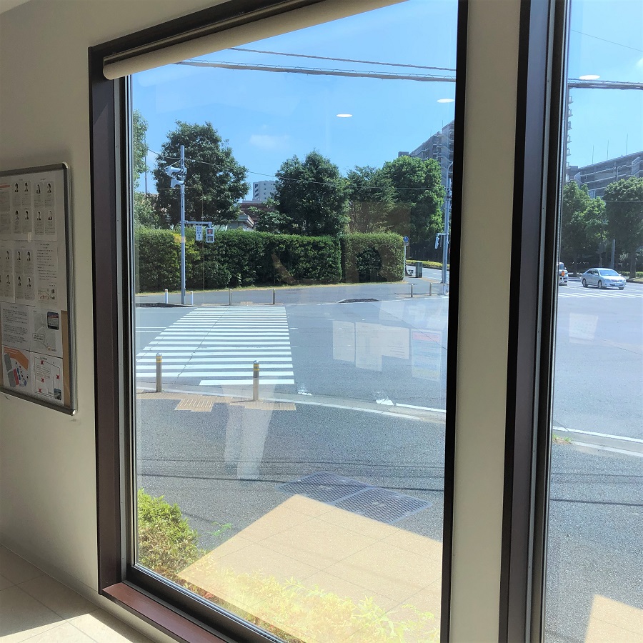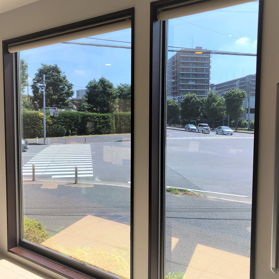 施工後の窓の様子。外からはマジックミラーのような見え方になり中が見えにくくなりますが、室内からの景観はほぼそのままです。