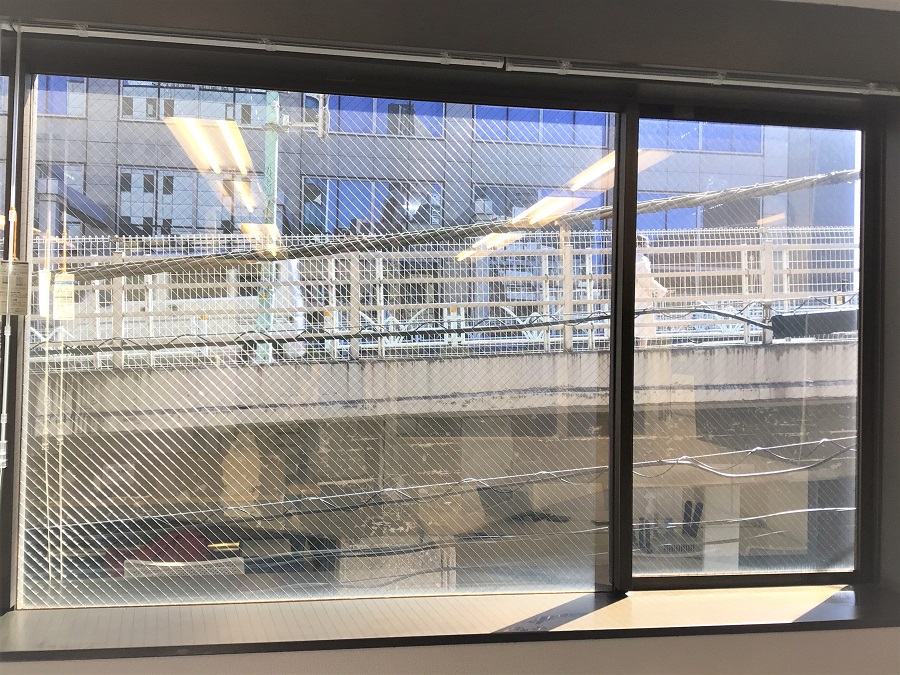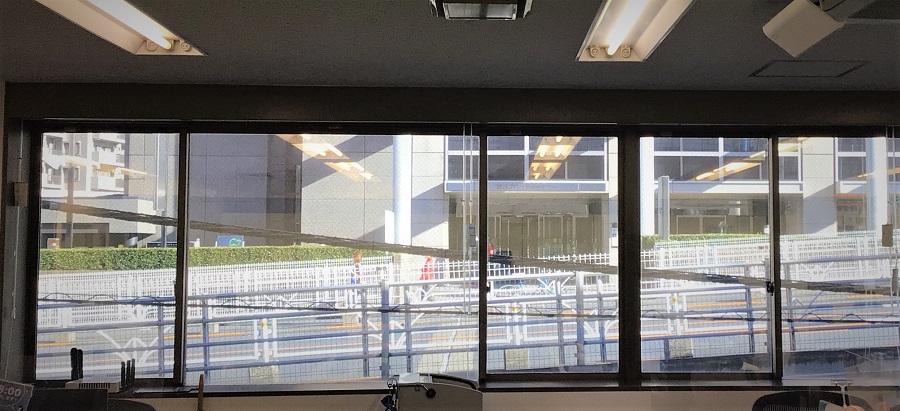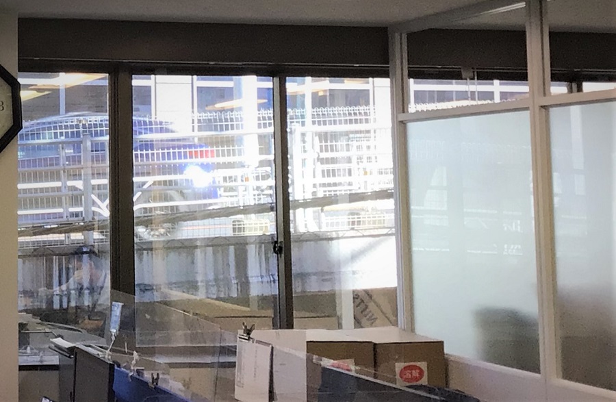 ‍事務所の横に大きく開いた窓に、断熱フィルムを貼付け。
