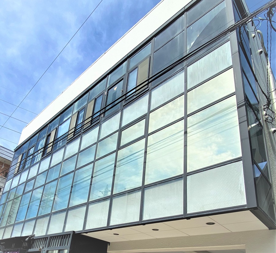 ‍薄く色のついたミラーのようなフィルムで、日中戸外からは目隠しとしても効果的です。