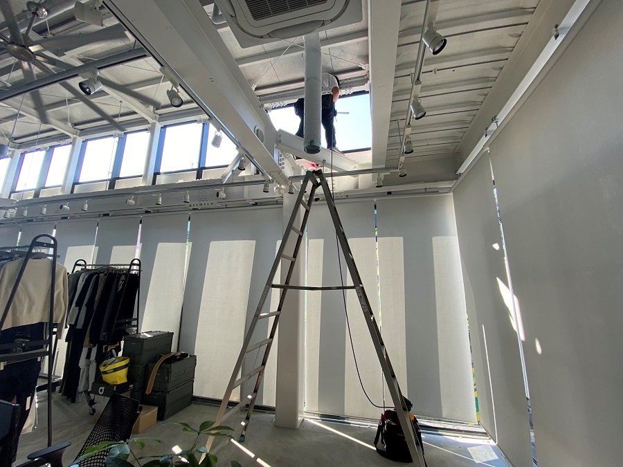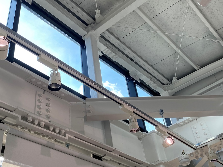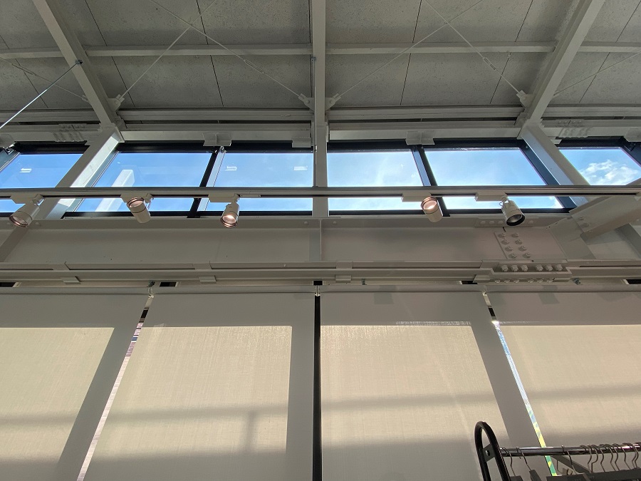 ‍施設の高所窓に断熱フィルムを貼付け。