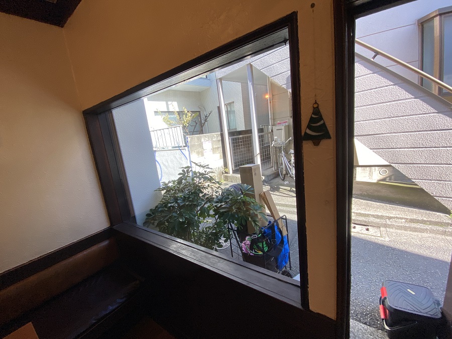 ‍店舗の窓に断熱フィルムを貼付け。