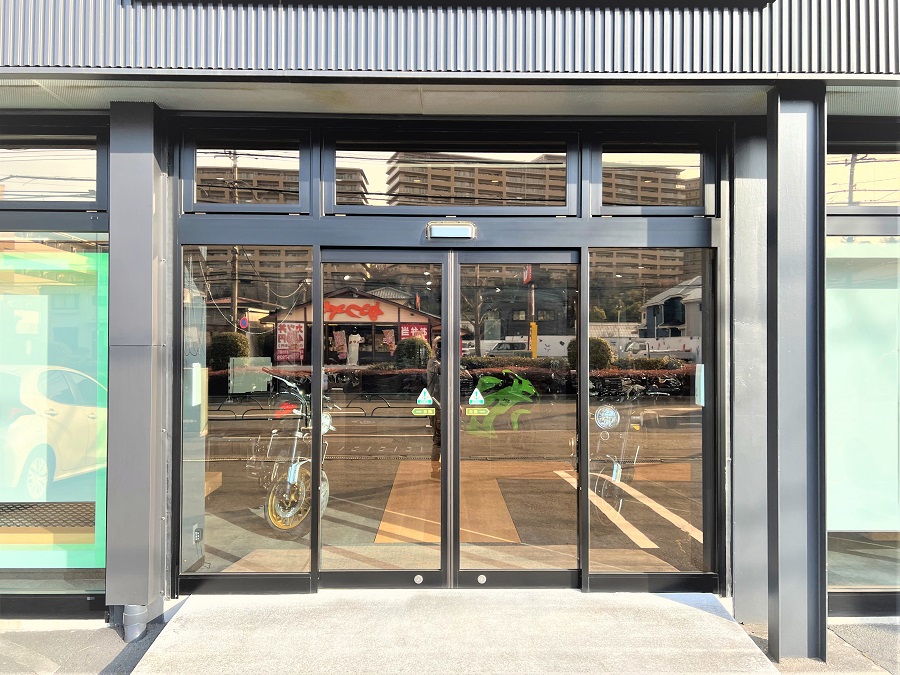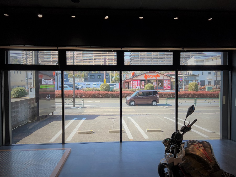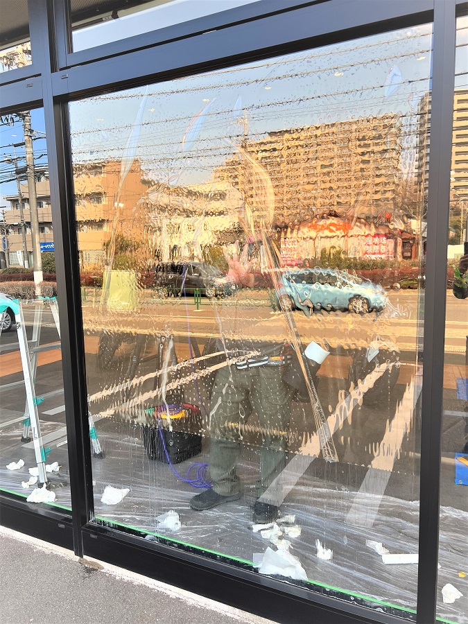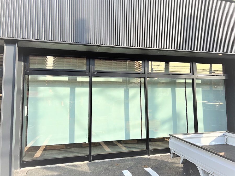 ‍店舗の入り口、およびショーウィンドウに断熱フィルムを貼付け施工。