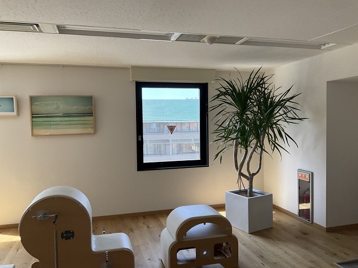 ‍フィットネス施設の窓に断熱フィルムを貼付け。