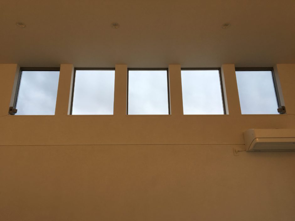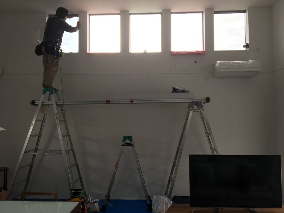 ‍施工中。部屋上部の窓から太陽光が強く入り、夏は眩しいです。