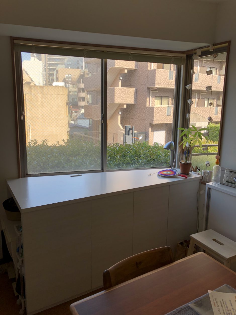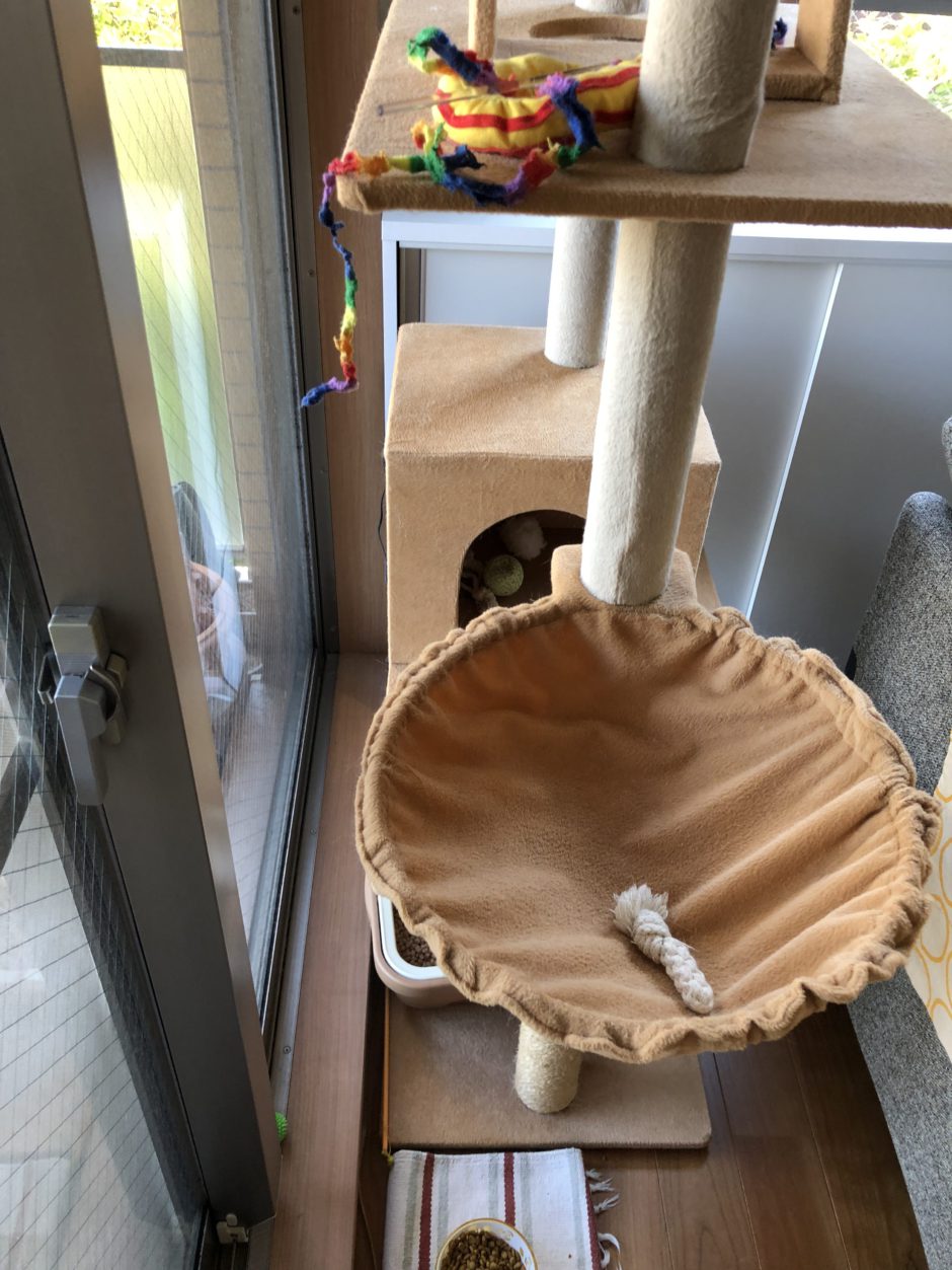‍施工前のリビング。窓際にはキャットタワーがあります。