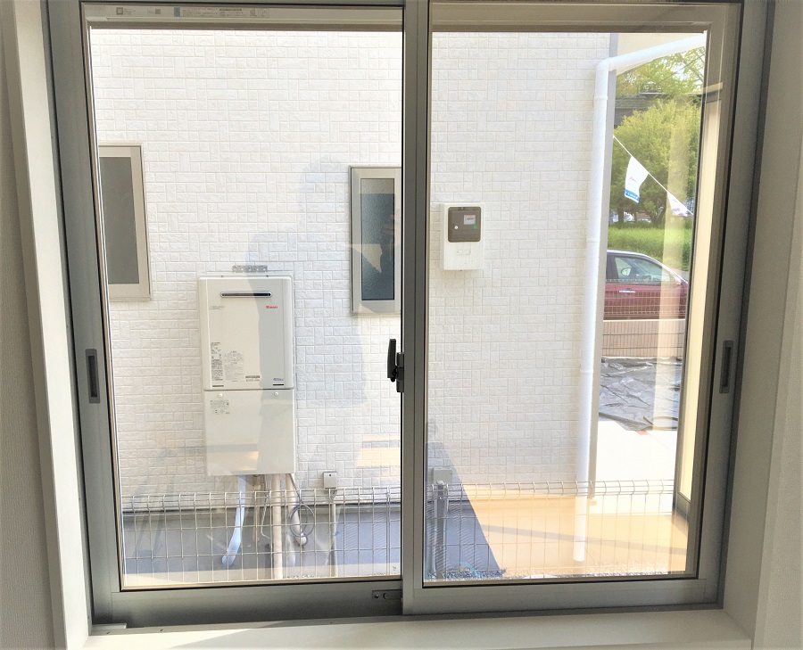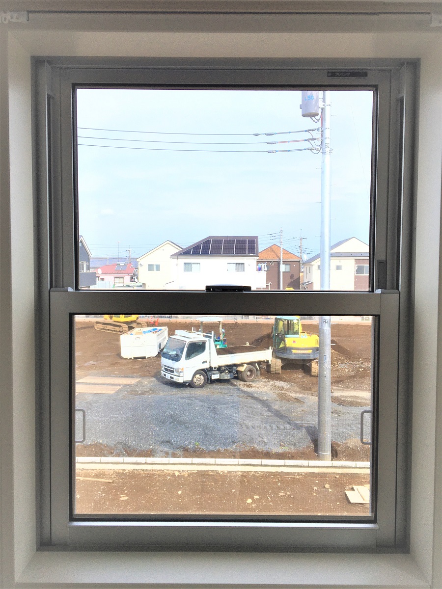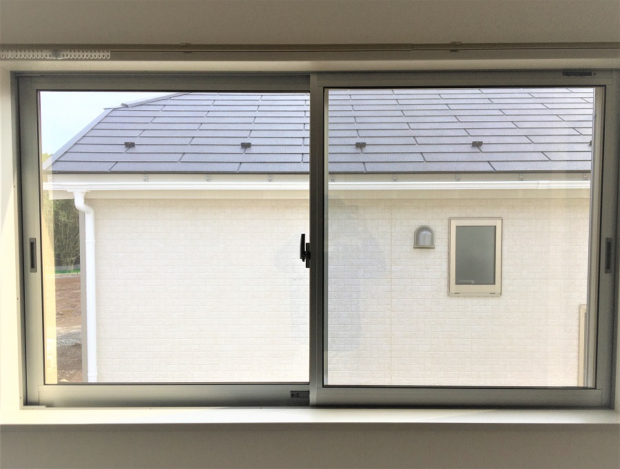 ‍こちらも2階の居室の腰高窓。日射熱を防ぎ飛散防止にも。