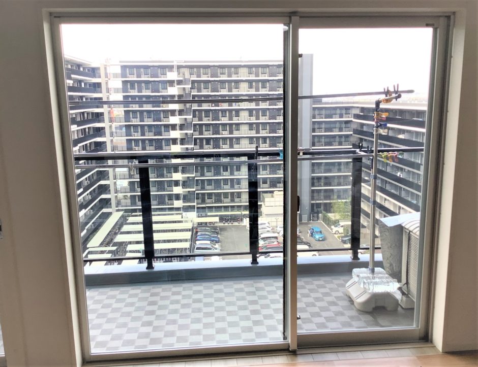‍高層マンション上層階、居室の掃き出し窓に断熱フィルムを貼付。