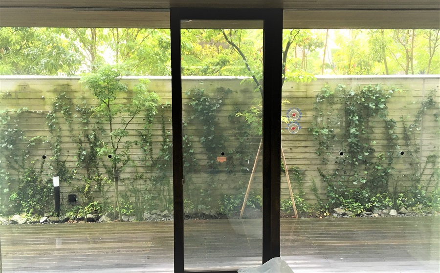 ‍住宅居室の大きくとった窓に断熱フィルムを貼り付け。