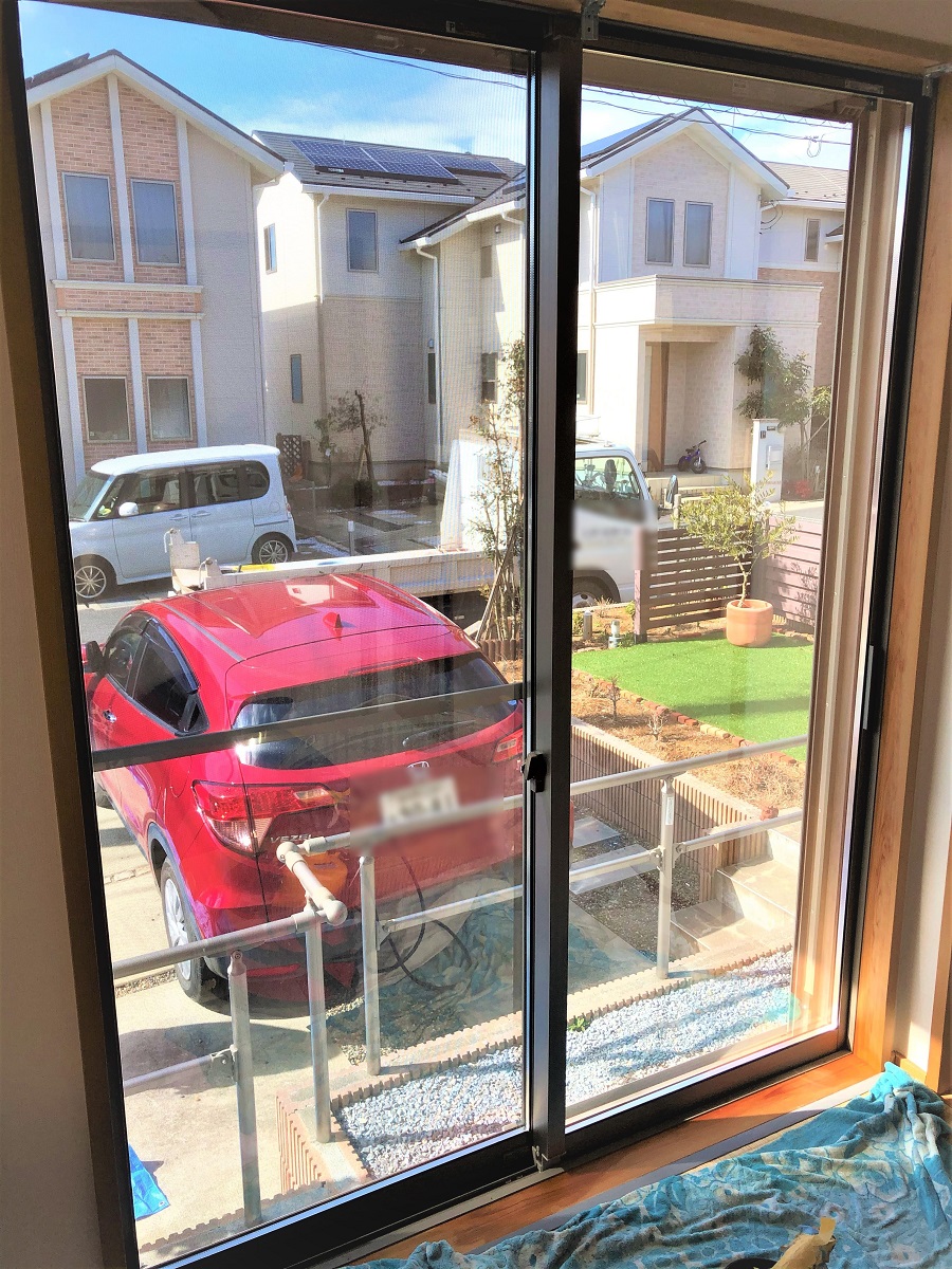 ‍住宅の窓に日射調整フィルムを貼り付け。