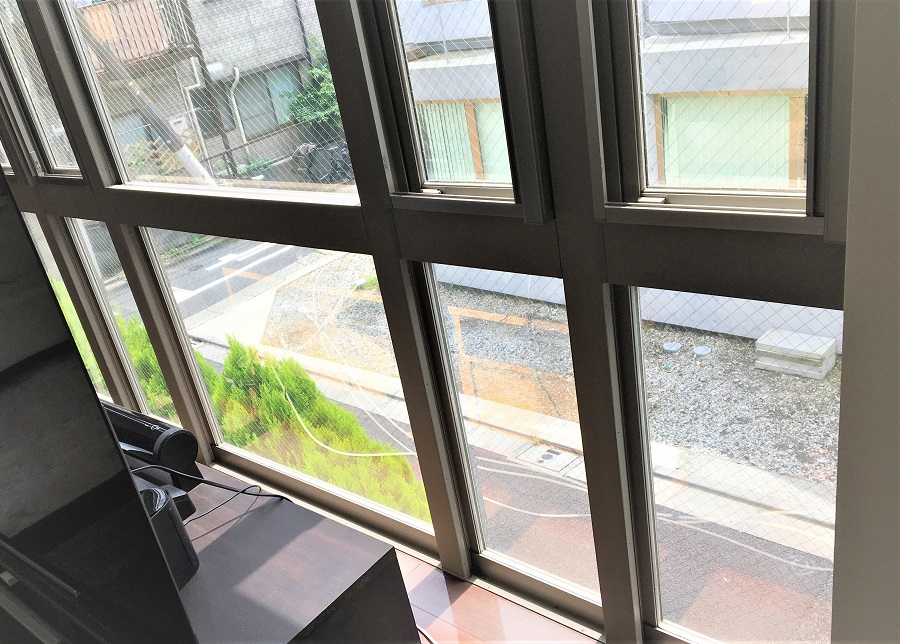 ‍住宅の窓に断熱フィルムを貼り付け。