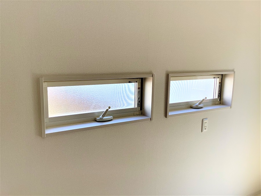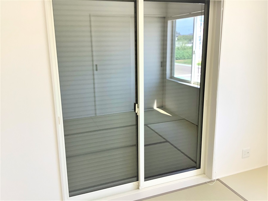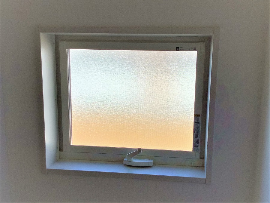 ‍新築住宅の窓に断熱フィルムを貼り付け。