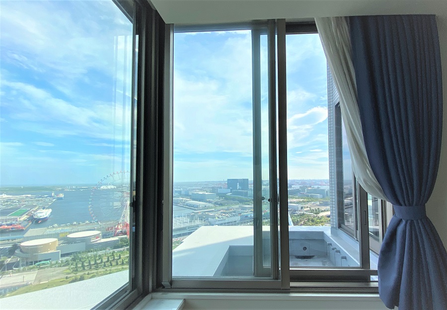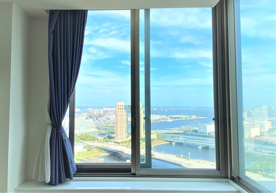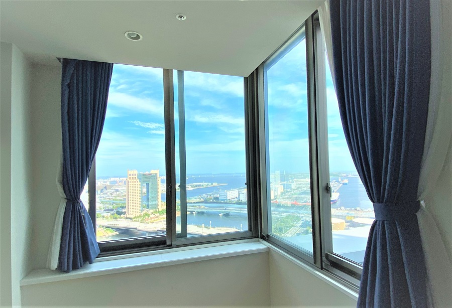 ‍高層マンションの居室窓に断熱フィルムを貼り付けます。