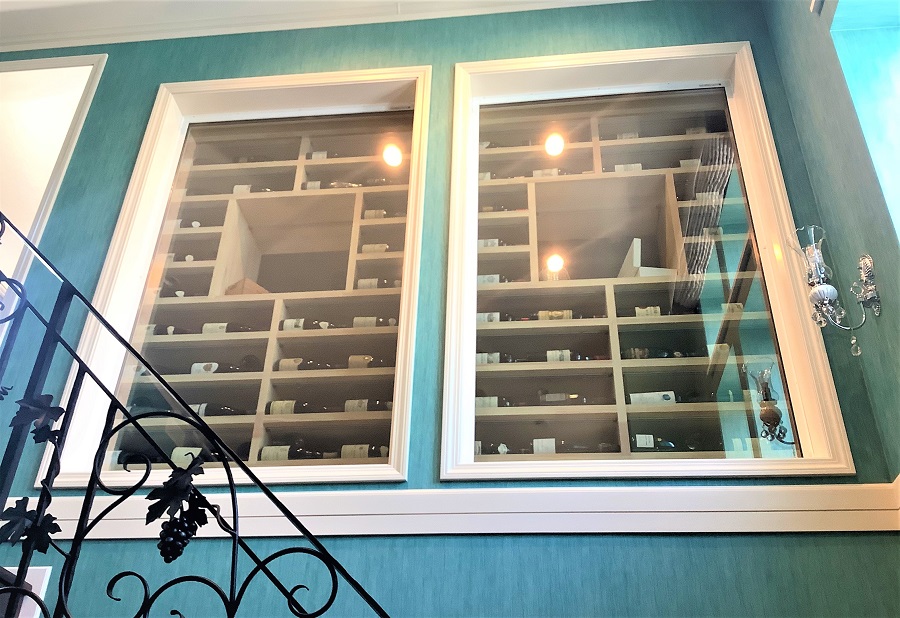 ‍会談吹き抜けのディスプレイ窓に断熱フィルムを貼り付け。