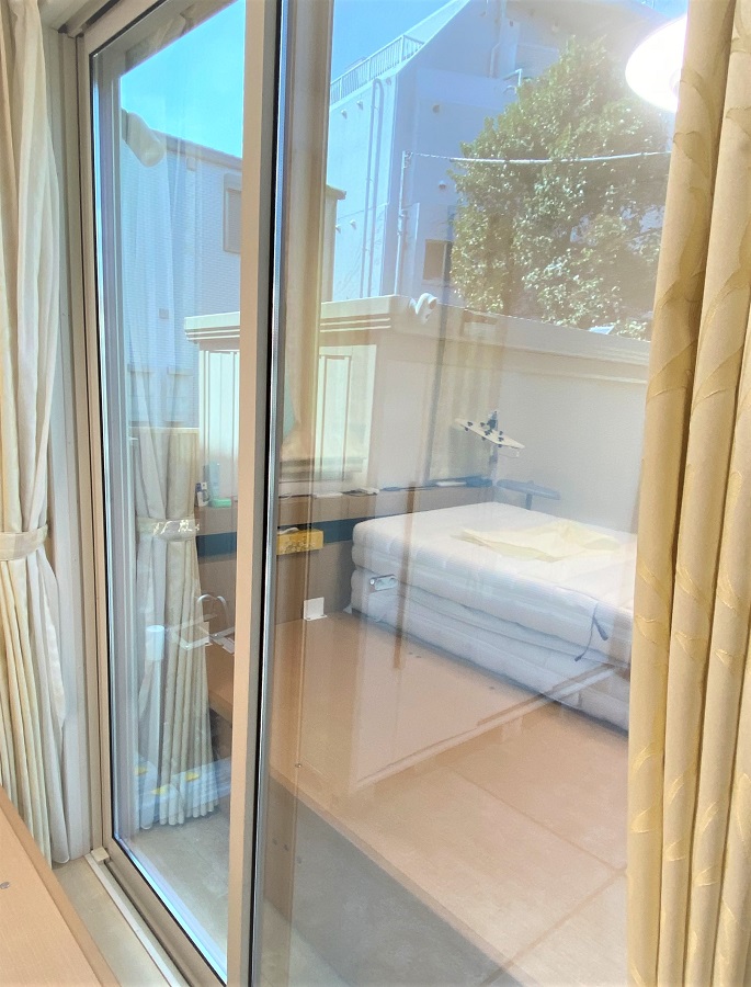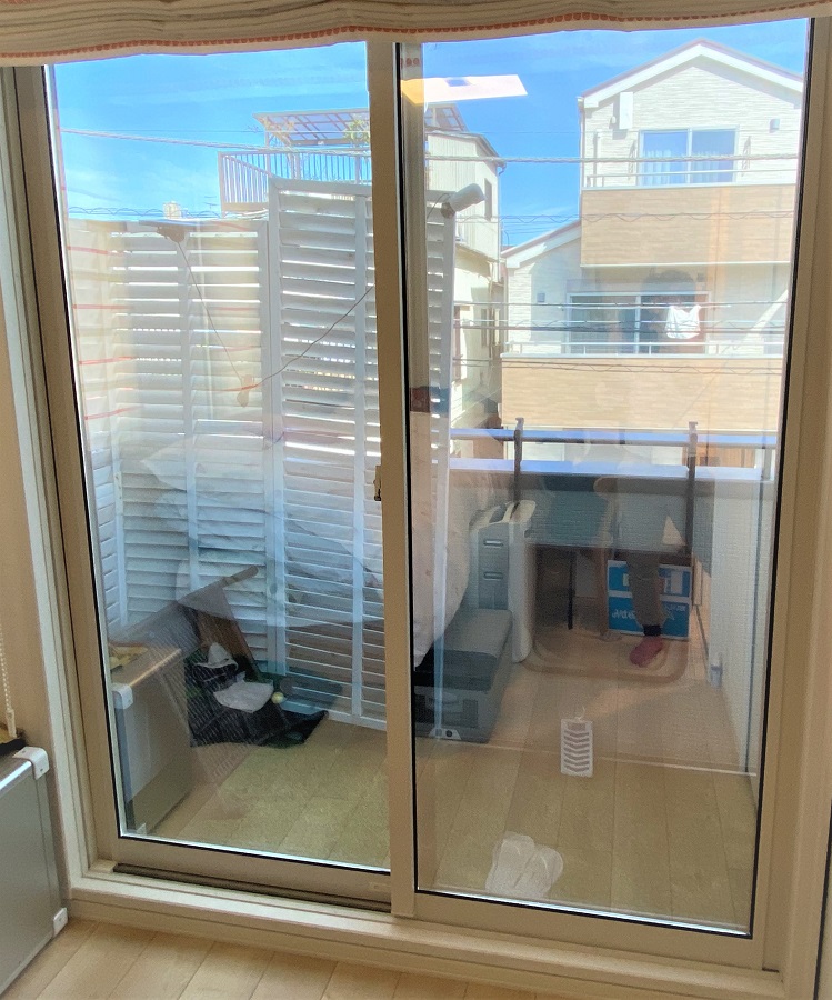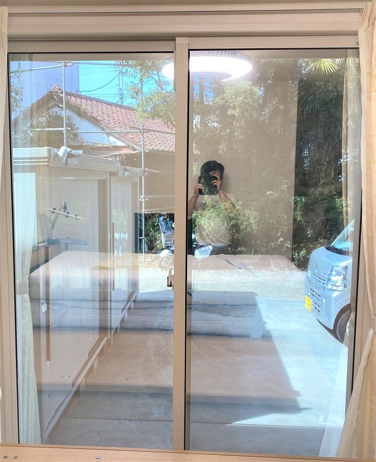 ‍戸建て住宅の居室窓に断熱フィルムを貼付け。