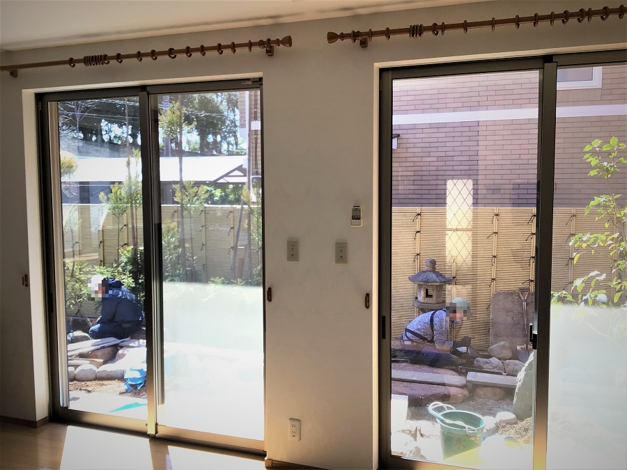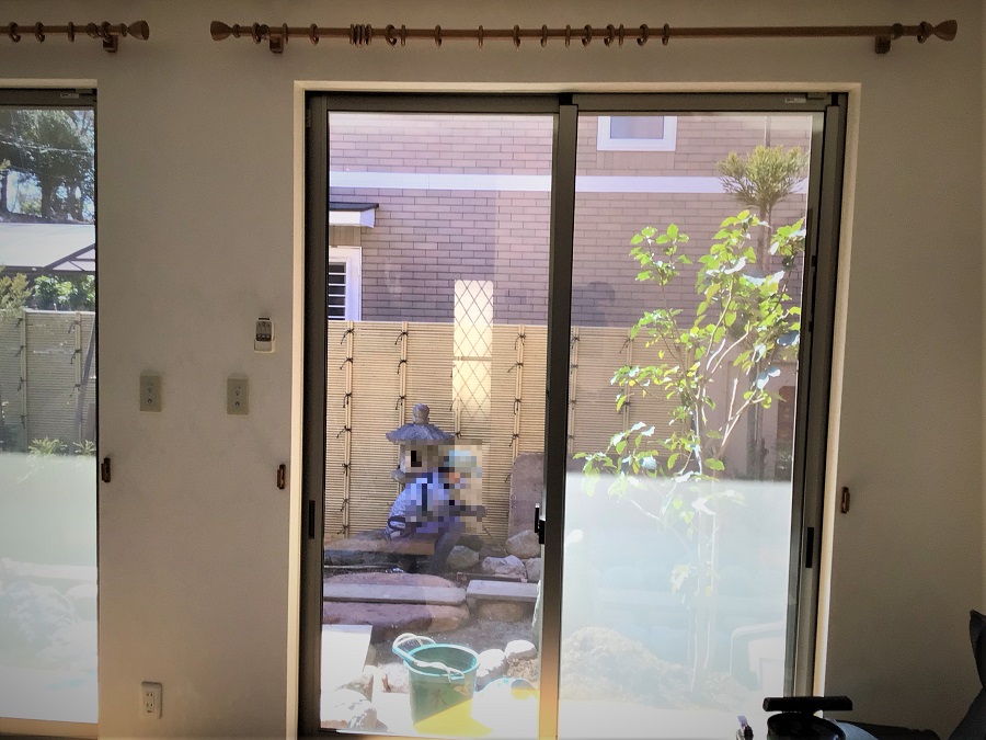 ‍戸建て住宅居室の窓に断熱フィルムを貼付け。