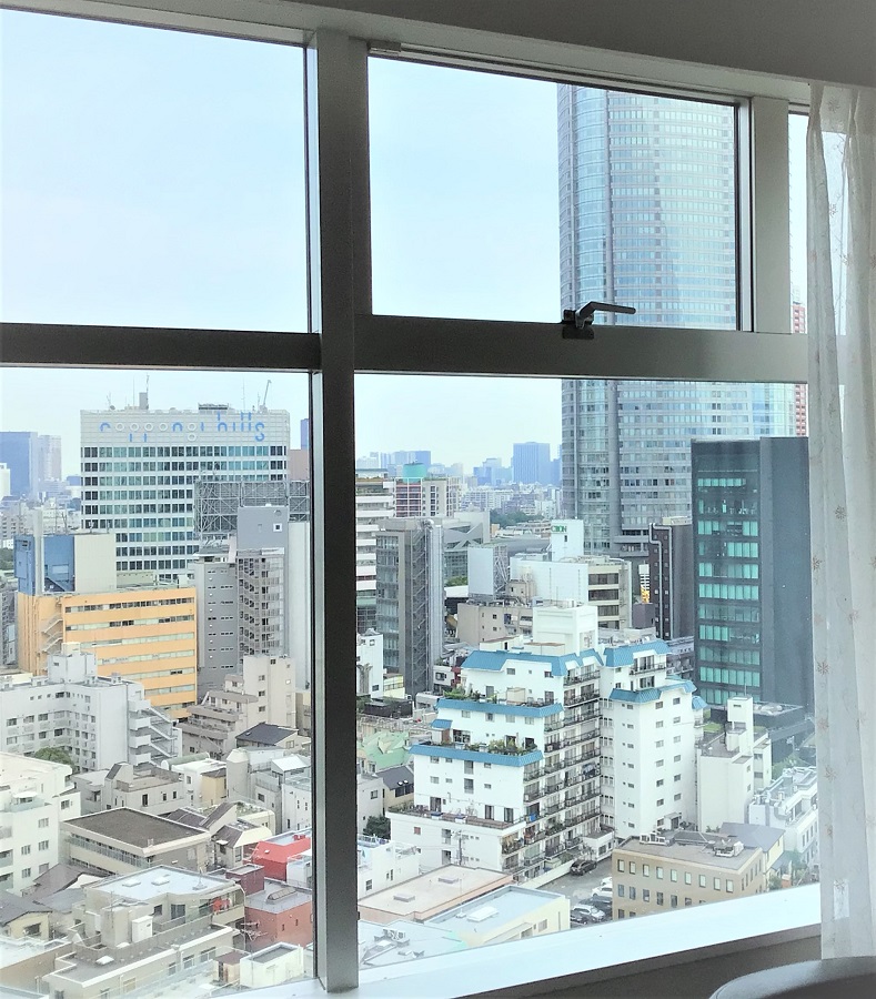 ‍高層マンションの居室窓に断熱フィルムを貼付け。