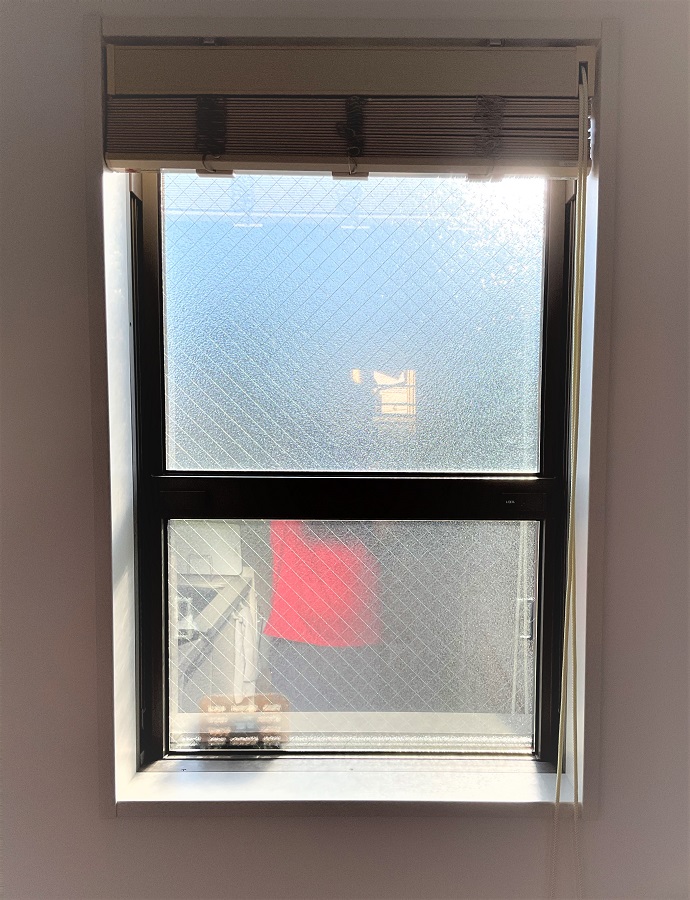 ‍住宅居室の窓に断熱フィルムを貼付け。