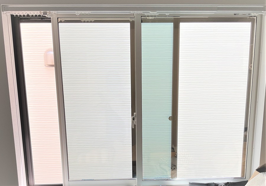 ‍戸建住宅の居室窓に断熱フィルムを貼付け。