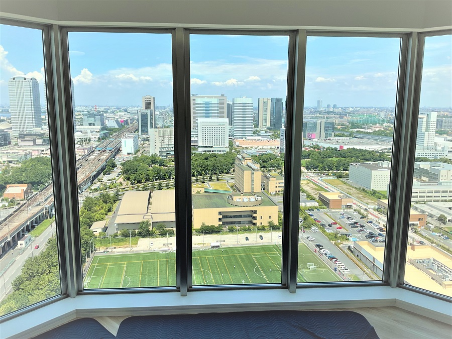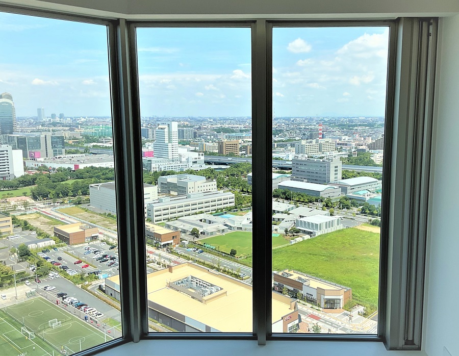 ‍高層マンションの居室窓に断熱フィルムを貼付け。