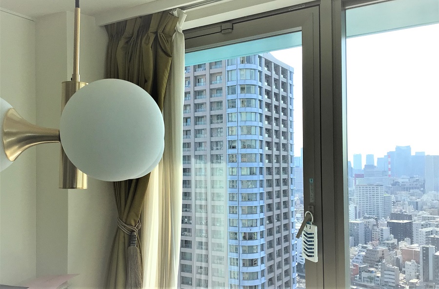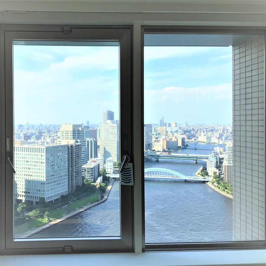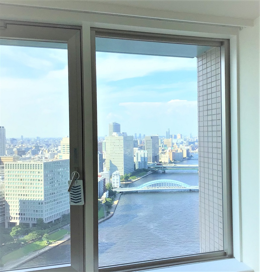 ‍高層マンションの居室窓に断熱フィルムを貼付け。