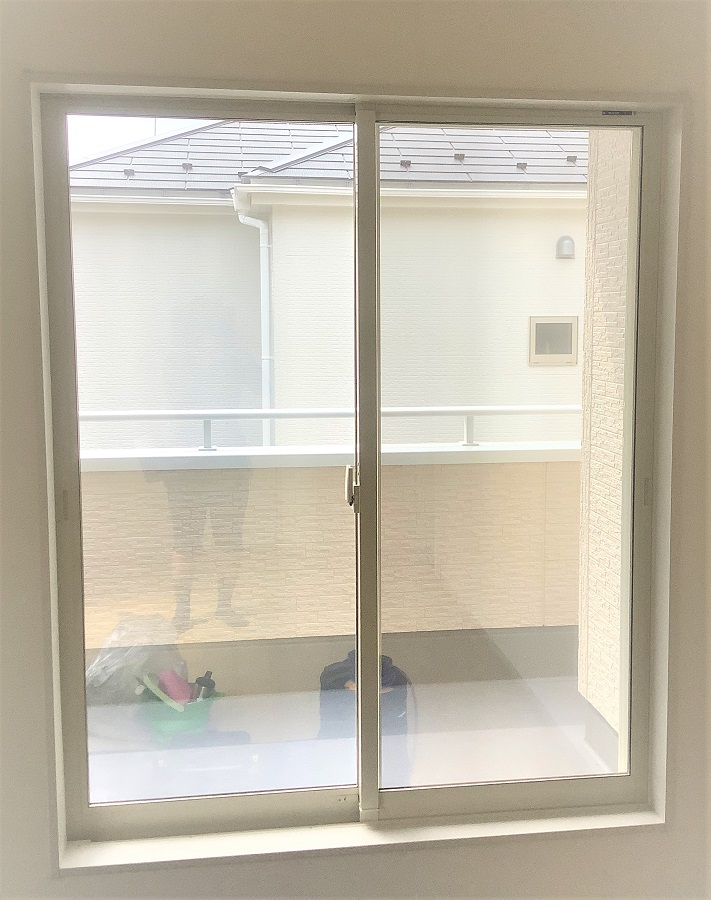 ‍戸建て住宅の居室窓に断熱フィルムを貼付け。