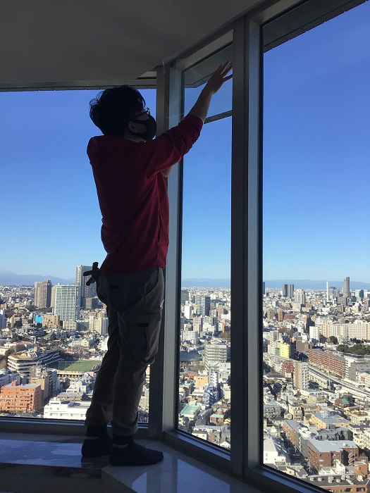 ‍高層マンションの居室窓に断熱フィルムを貼付け。