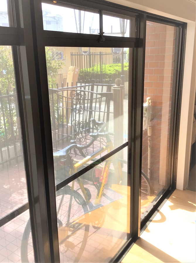 ‍住宅の窓に断熱フィルムを貼付け。