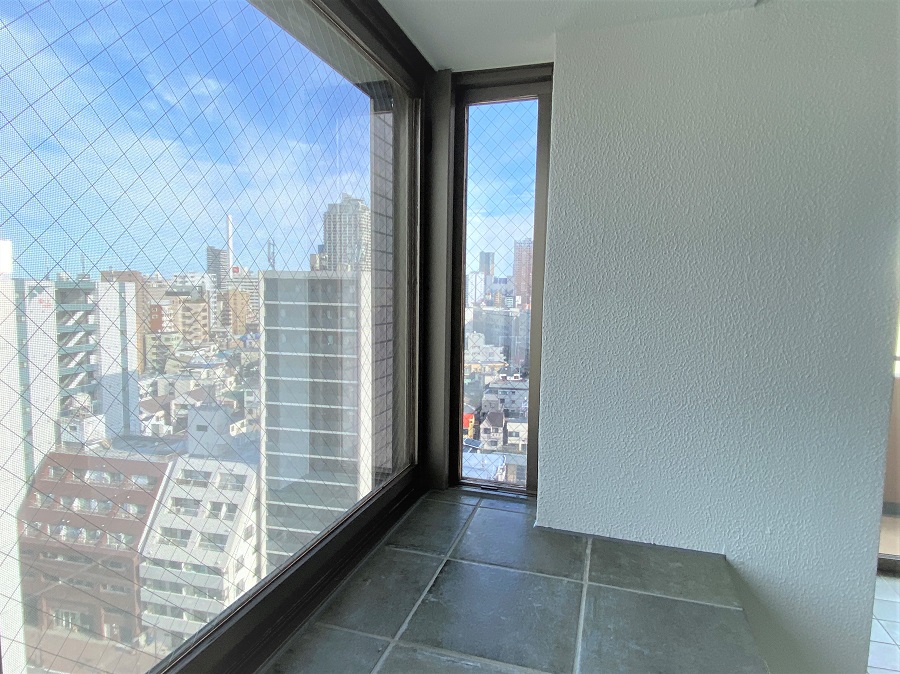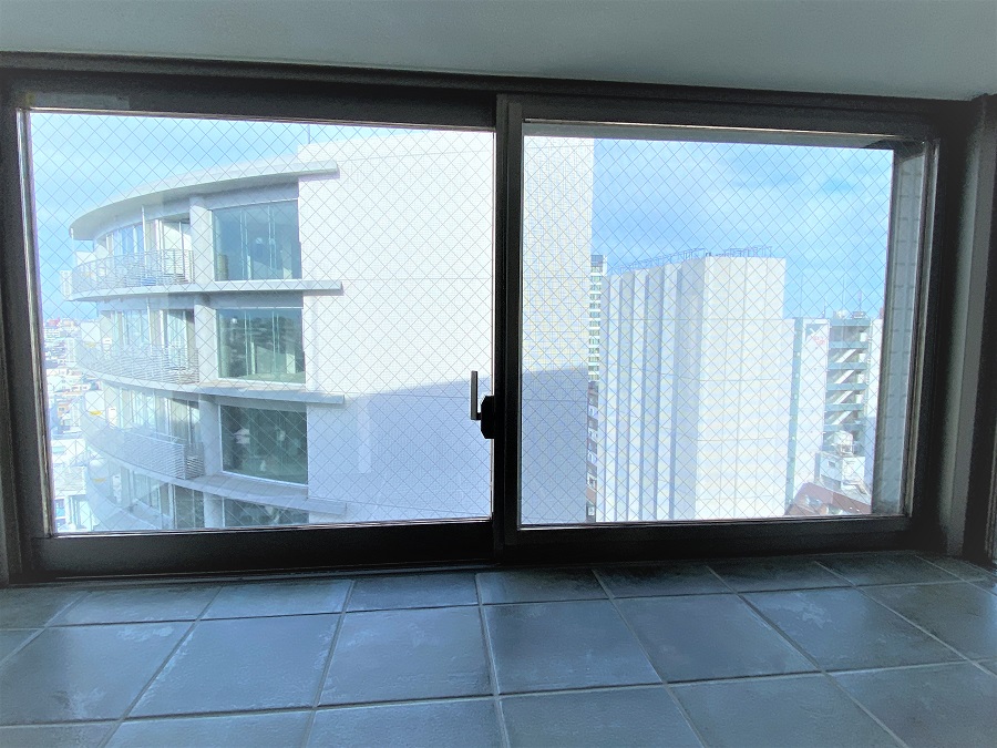 ‍マンションの窓に断熱フィルムを貼付け。