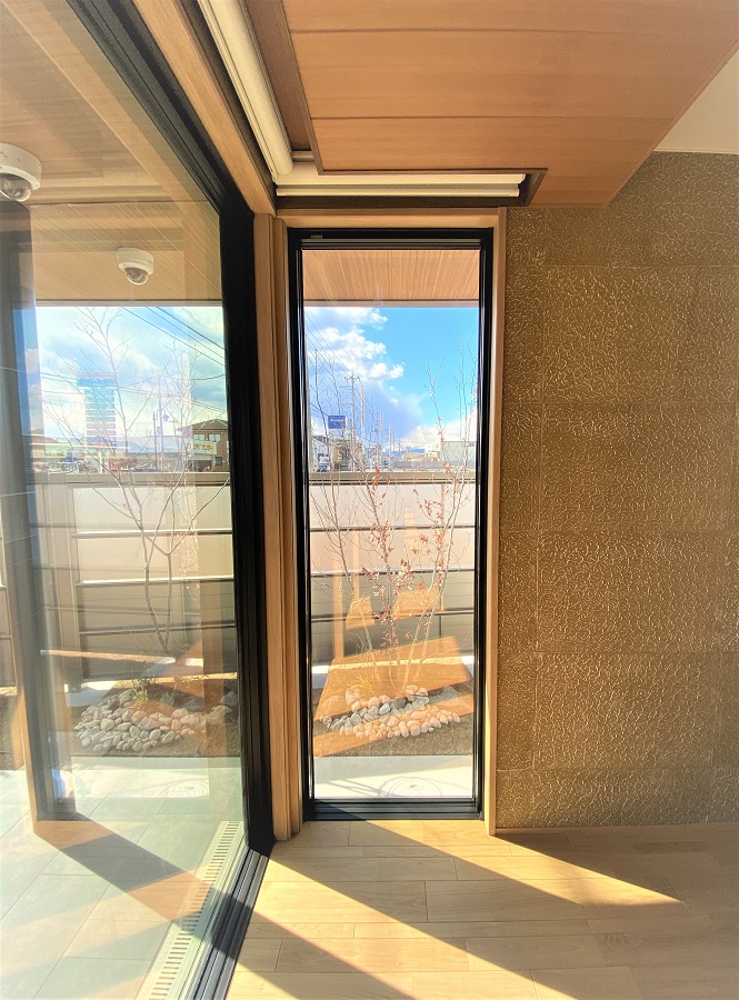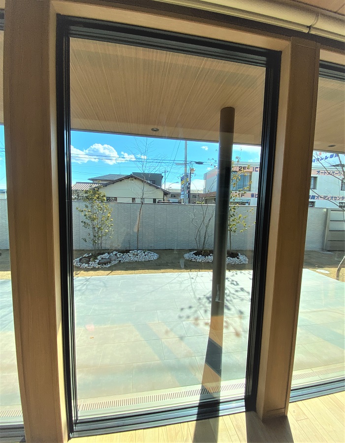 ‍新築戸建て住居の居室窓に断熱フィルムを貼付け。