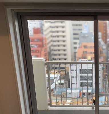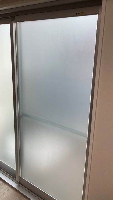 ‍マンション居室の窓に遮熱フィルムを貼付け。今回使用したフィルムは3M社製の『フロストシルバー18』です。