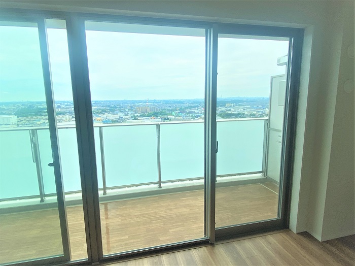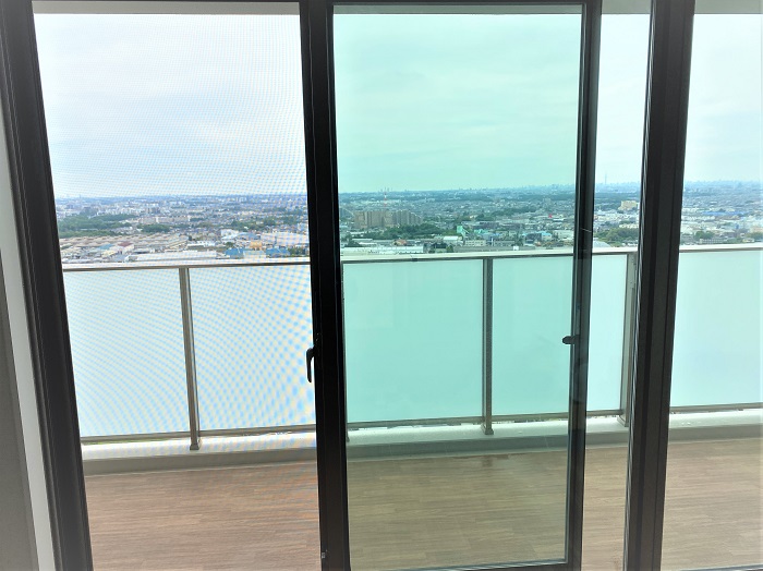 ‍高層マンション居室窓に断熱フィルムを貼付け。今回使用したフィルムは3M社製の『Nano80S』です。