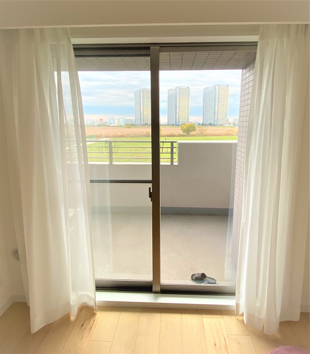 ‍マンションの居室窓に断熱フィルムを貼付け。