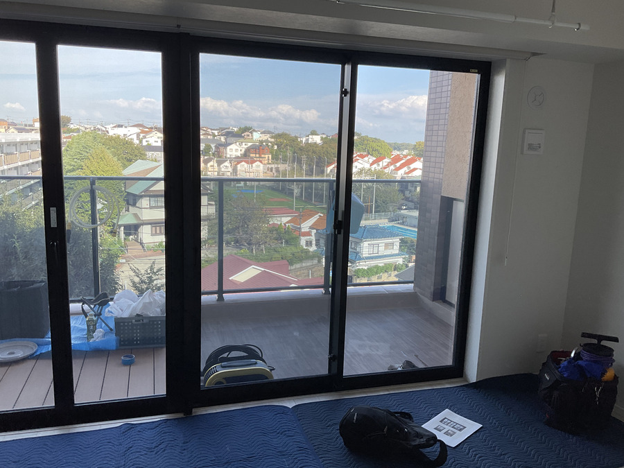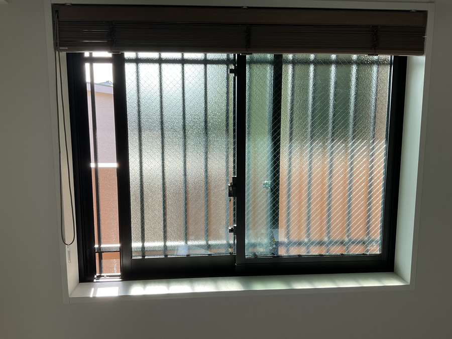 ‍マンションのご住居窓に断熱フィルムを貼付け。でこぼこのある型ガラスでもフラットな面があれば施工が可能です。