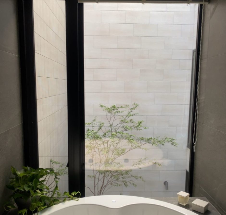 ‍戸建てご住居の中庭に面した窓に断熱フィルムを貼付け。