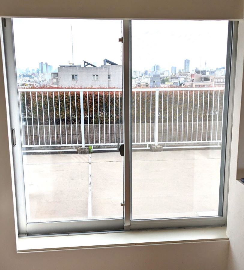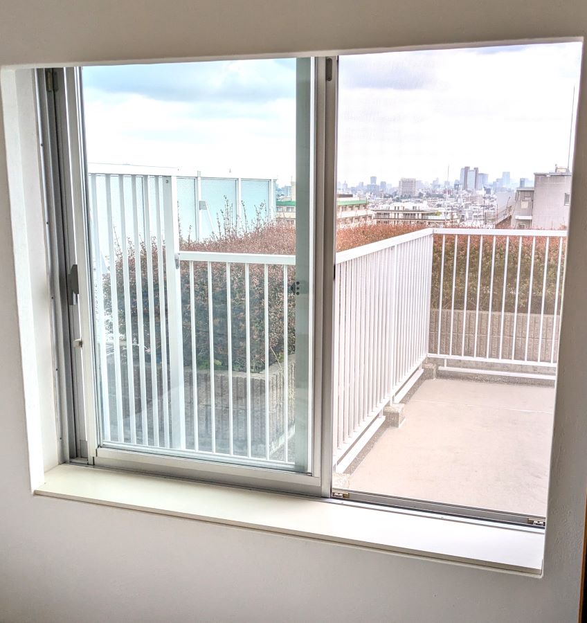 ‍マンションの居室窓に断熱フィルムを貼り付け施工。