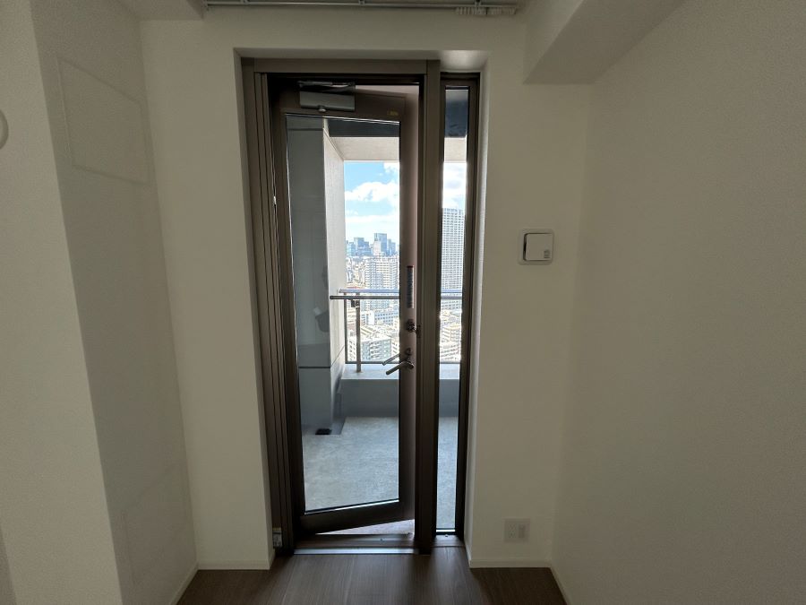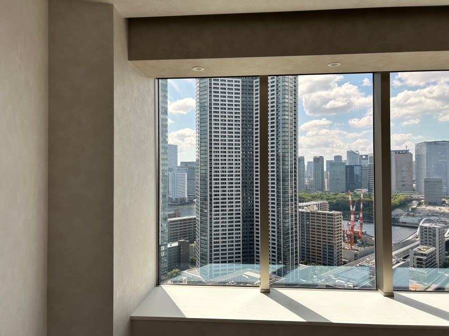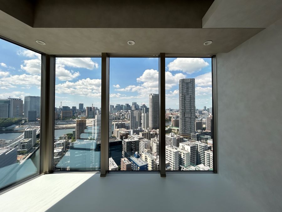 ‍高層マンションの居室窓に断熱フィルムを貼り付け施工。