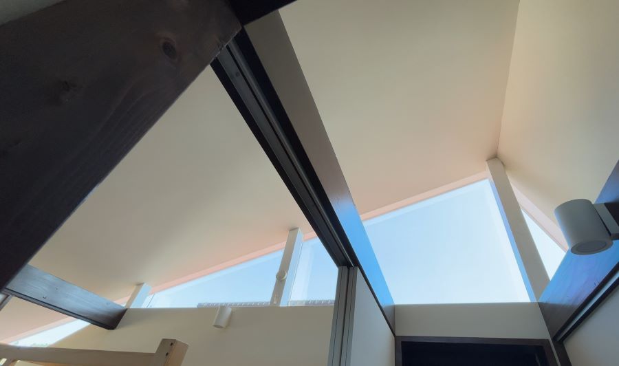 ‍別室の大きな窓には住友理工社製の『リフレシャインTW32』を。夏にも冬にも効果があります。